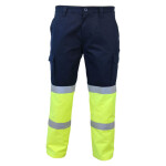 265gsm polyester outer, Cotton backed woven for Hi-Vis fluro Yellow fabric (Comply with AS/NZS1904.4:2010) on lower leg, Comfort fit, one side contains large flap cargo pocket, the other a tool & mobile phone pockets,